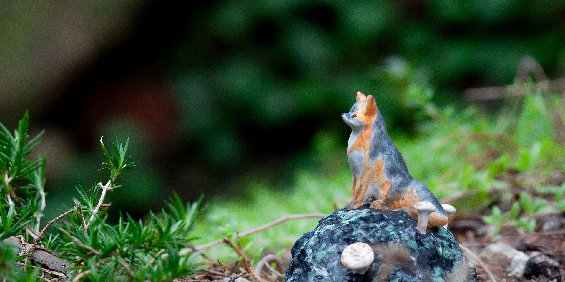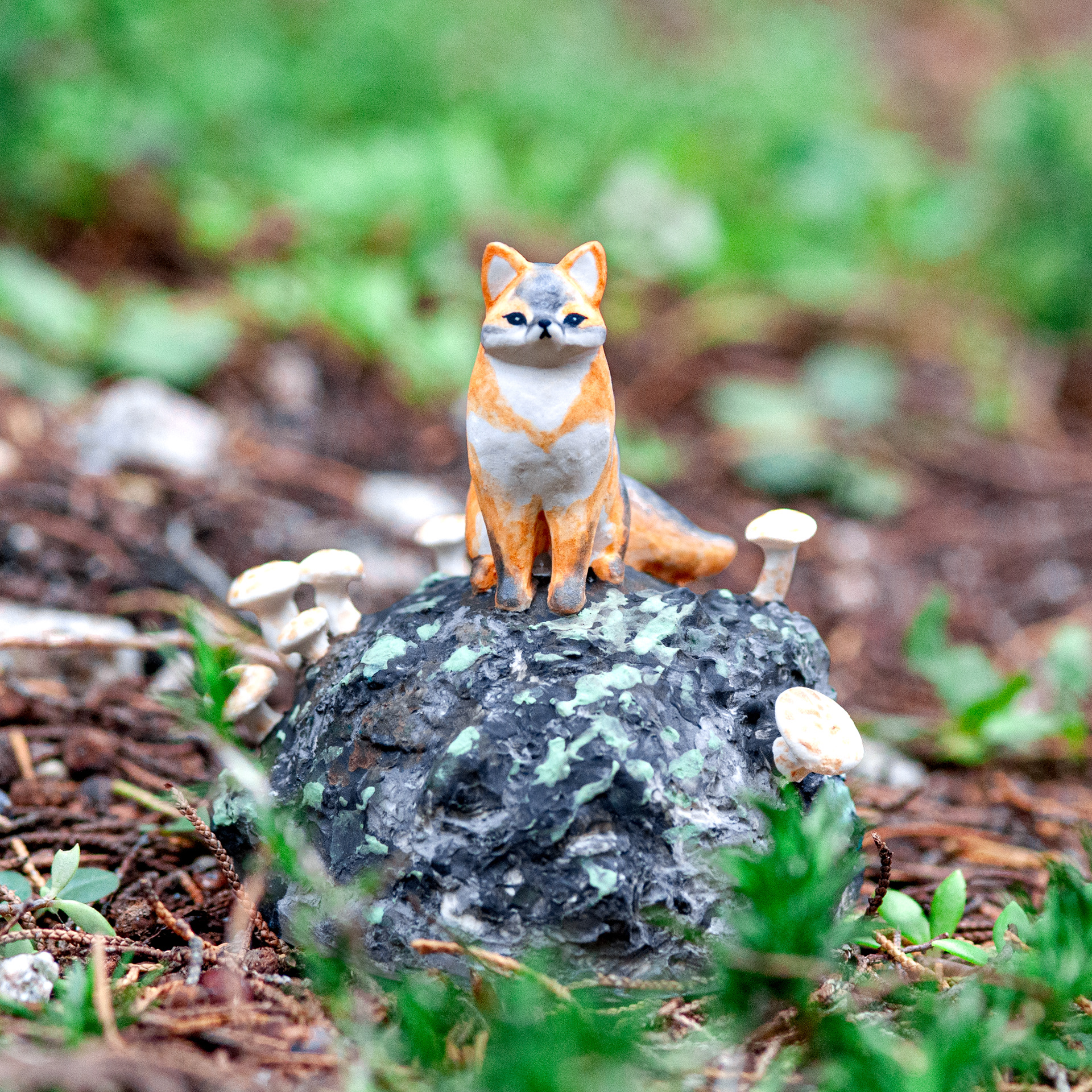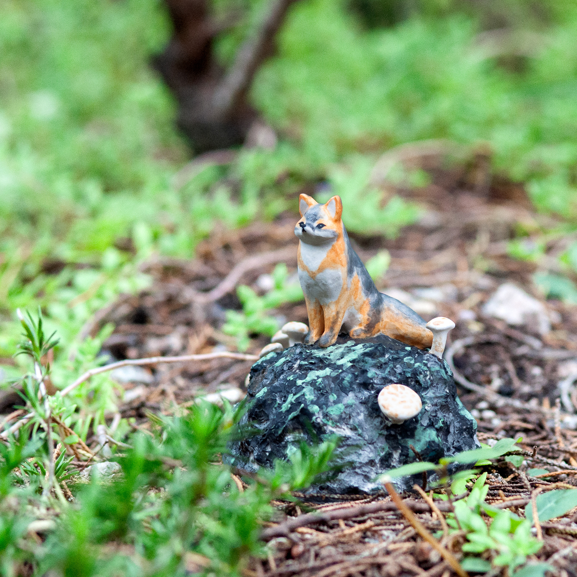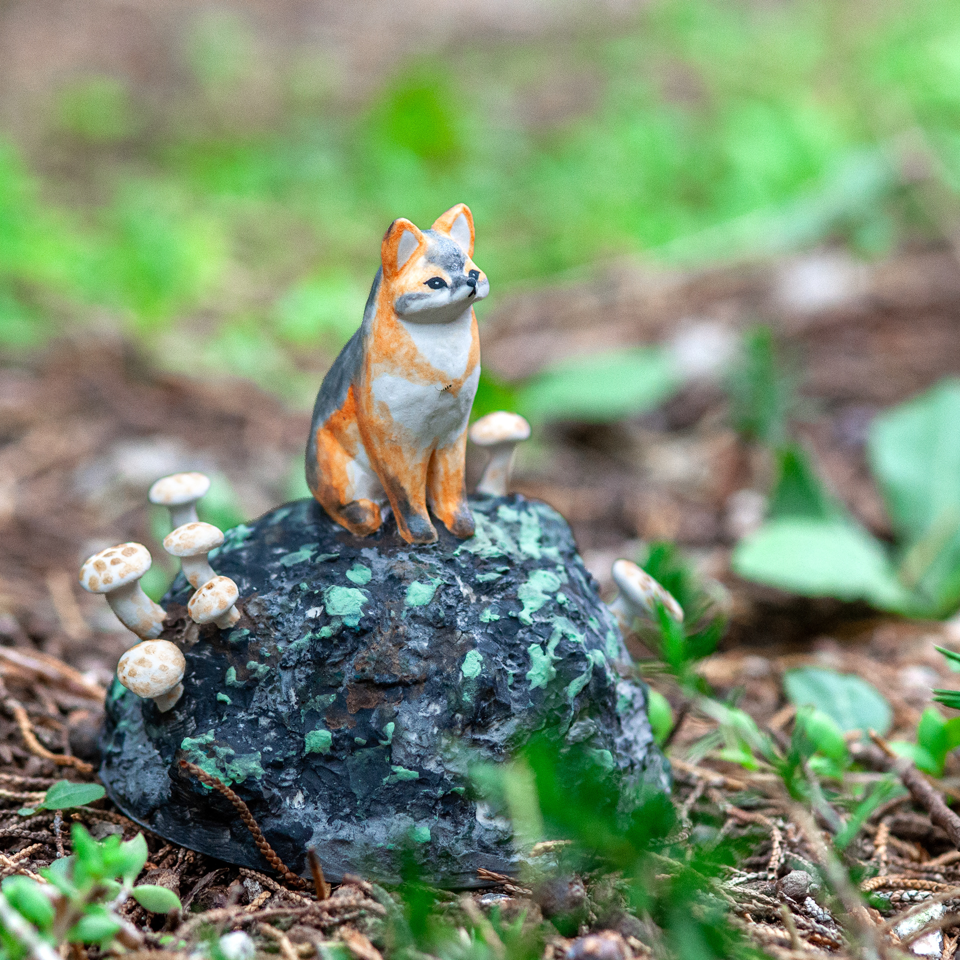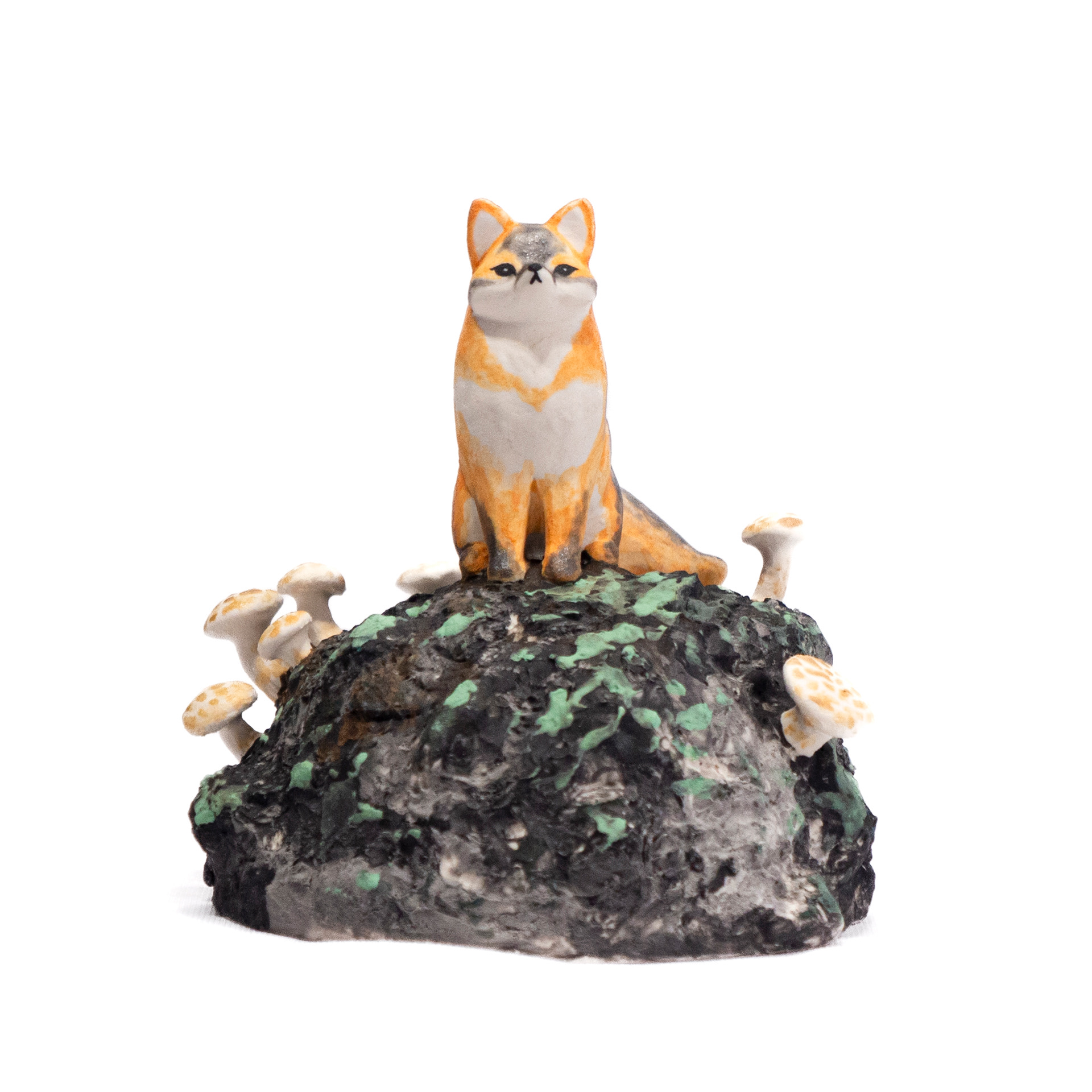<바위 위 회색여우>, 2023. 백토에 채색, 8x7.8x7cm.