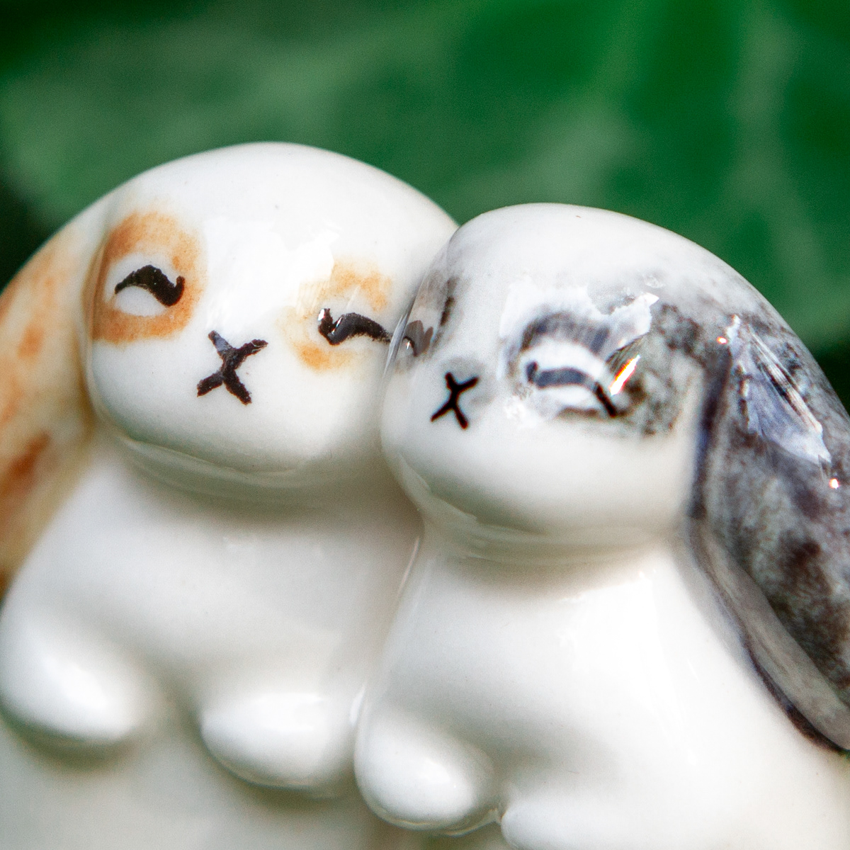 두 볼을 맞댄 롭이어 토끼 한 쌍이