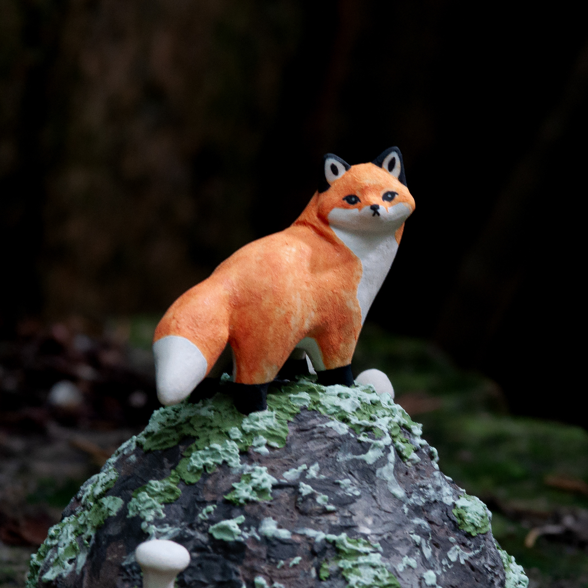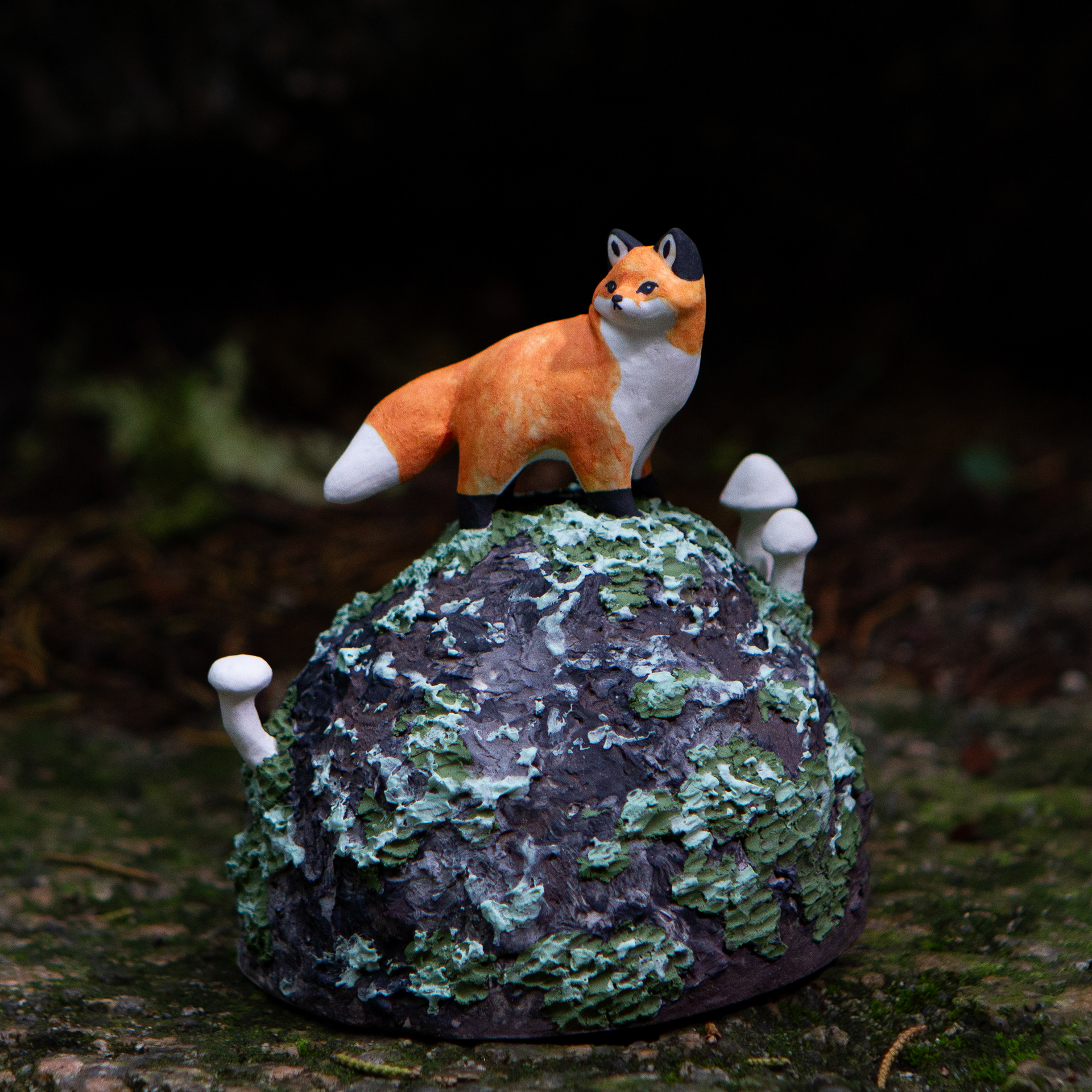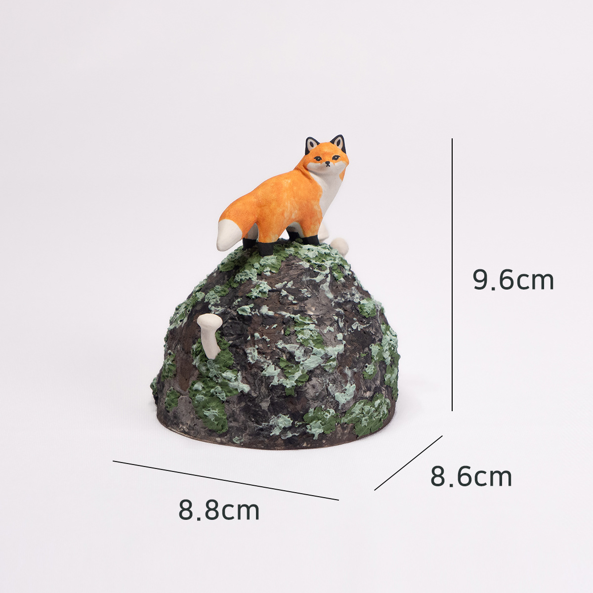 <바위 위 붉은여우>, 2023. 백토에 채색, 9.6x8.8x8.6cm.