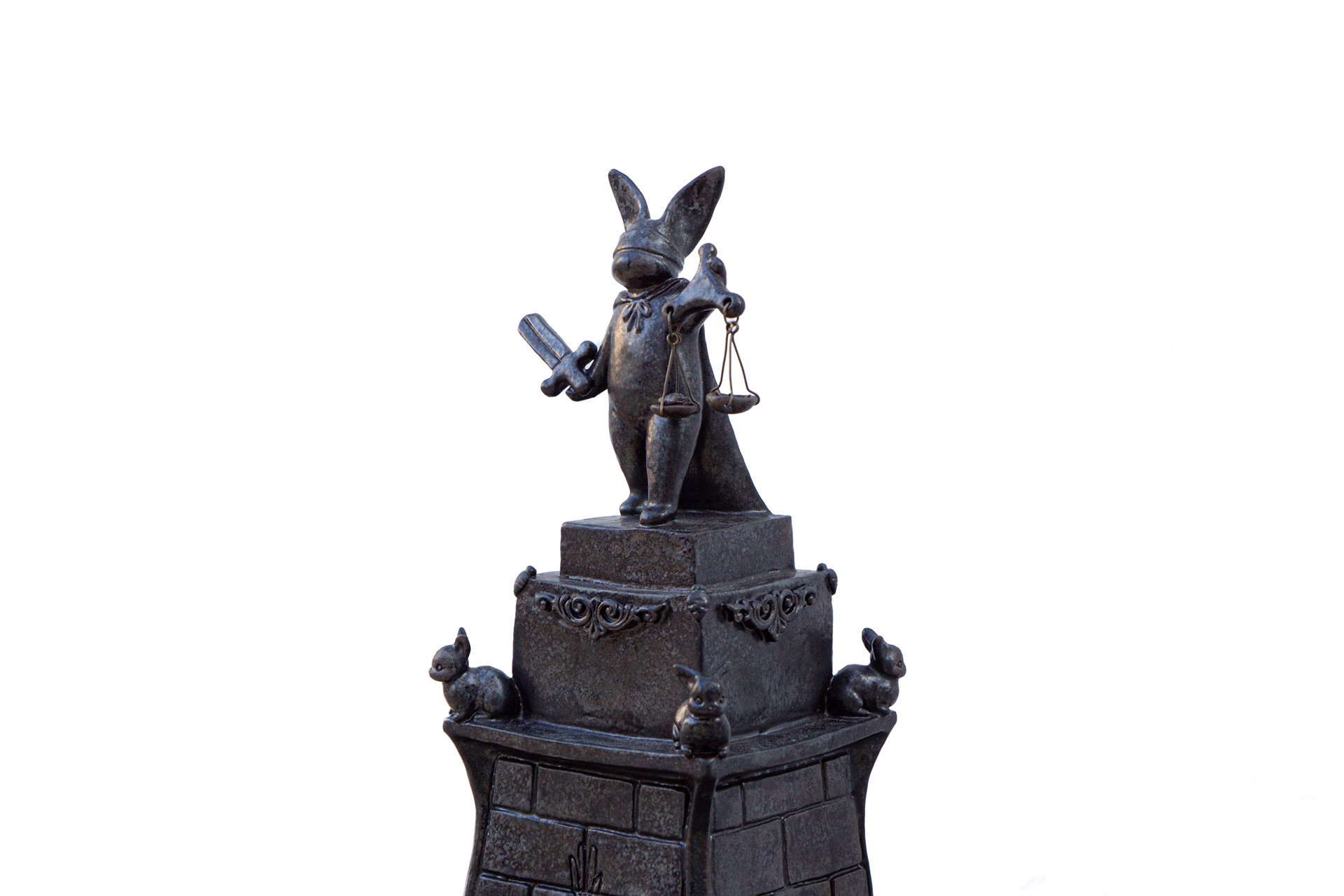 <정의의 토끼상>, 2022. 흑토에 흑유, 27.5x11.5x11cm.