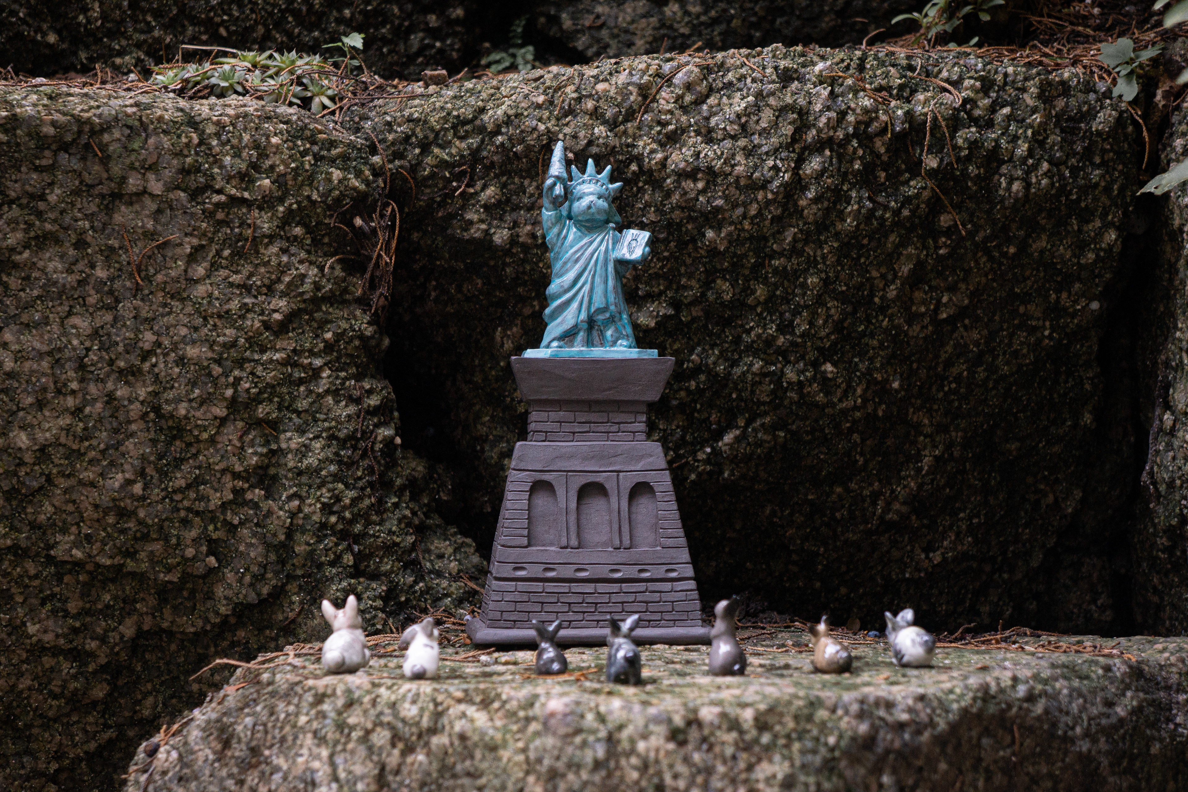 <자유의 토끼상>, 2022. 흑토에 채색, 22.5x10.5x10.5cm.