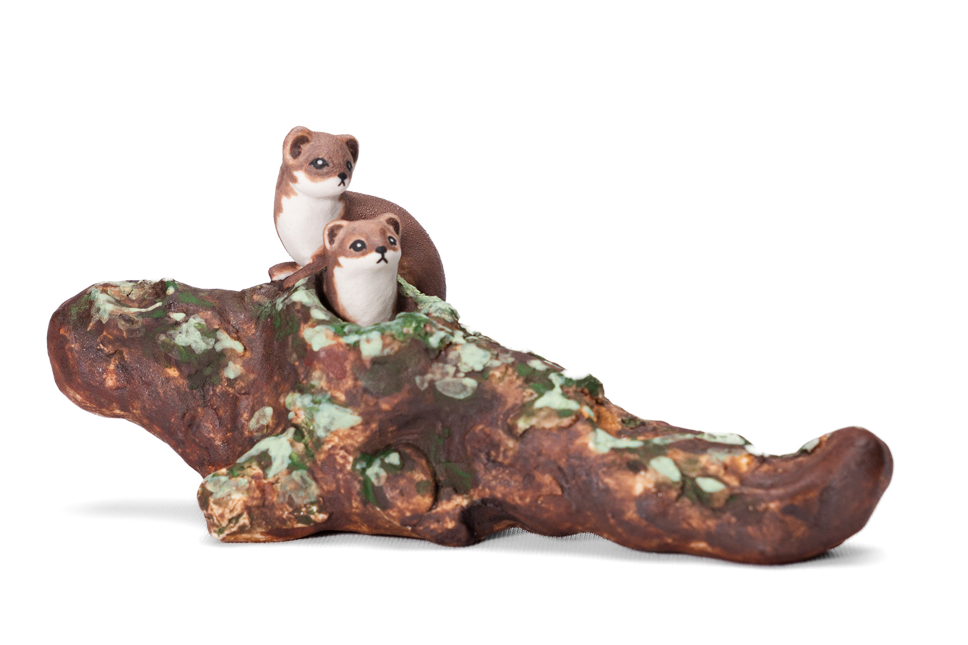 <나무 위 족제비>, 2024. 백토에 채색, 5.5x12.5x4.5cm.